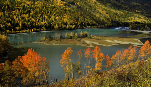 喀納斯臥龍灣景區秋色(9月15日攝)。