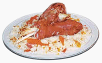 蔥、食油等原料作 成的飯。因吃這種飯時多用手直接抓著吃,故俗稱“抓飯”。抓飯的種類很多,除用羊肉做抓飯外,還有用牛肉、雞肉、葡萄干、杏干、雞蛋、南瓜等作輔料做成的抓飯,都有不同的特色。