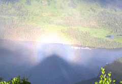 有關(guān)專業(yè)人士稱,“佛光”是由于當?shù)剡B日來的大量降雨和天氣的驟然變化造成水氣較大,光線遇到這些水氣折射形成的。真是難得一見的。
