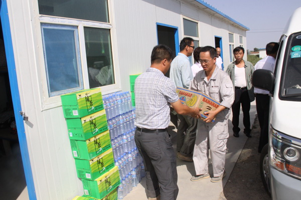 在傳統節日中秋佳節來臨之際,9月10日上午,華春工會主席高青與人力資源部、編輯部、恒潤公司等有關部門人員,代表華春集團總裁李成功先生與華春全員,赴頭屯河區、御宮華府項目工地、五家渠毛紡倉庫和華春毛紡施工現場,對節日里仍堅守在工地的員工進行親切慰問,送去水果、飲料及烤鴨等慰問品,獻上華春全員的一片深情厚誼。