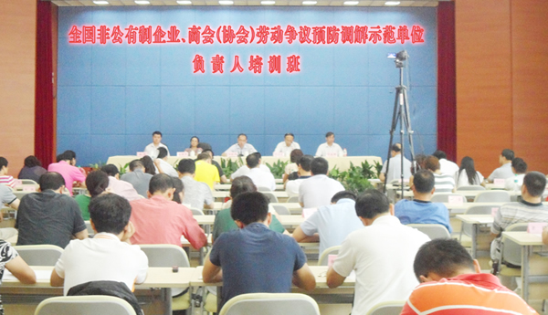 國家高度重視示范工作的進行,由國家人力資源社會保障部、人事司、調解仲裁管理司和中華全國工商聯,共同組織對被確定為全國勞動爭議預防調解示范單位的負責人進行集中培訓。人社部仲裁管理司、全國工商聯、全國總工會、上海財經大學法學院、中國人大勞動人事學院教授、上海市人社部仲裁院院長等領導和專家,從不同角度解讀了在新形勢下預防勞動爭議的思路和主要任務及有關政策、法律知識、疑難案件的評析、勞資的協商等有關勞動關系、勞動爭議的理論知識,以保障示范工作的有效開展。