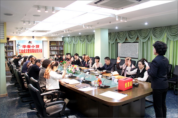 通過會員民主選舉,李煒同志當選為烏魯木齊市華春小額貸款股份有限公司首屆工會委員會主席,李綱、尹海玲同志當選為首屆工會委員會委員;尹海玲同志當選為首屆工會女工委員會主任,肖萌、武雪同志當選為首屆工會女工委員會委員;安曉輝同志當選為經費審查委員會主任,陳剛、鄧春燕同志當選為經費審查委員會委員。