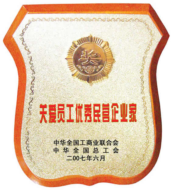 “關愛員工優秀民營企業家”榮譽證書