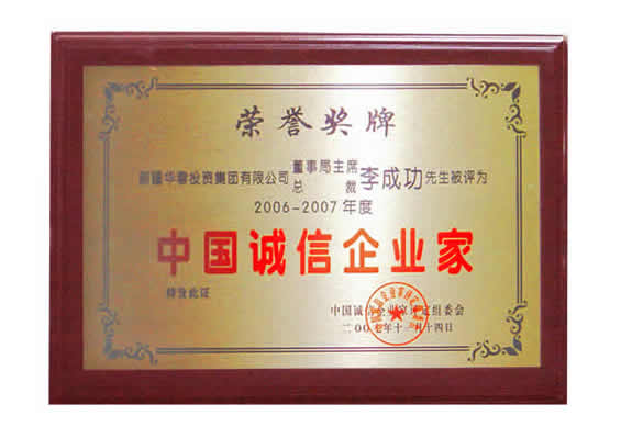 “06-07年度中國誠信企業家”榮譽證書