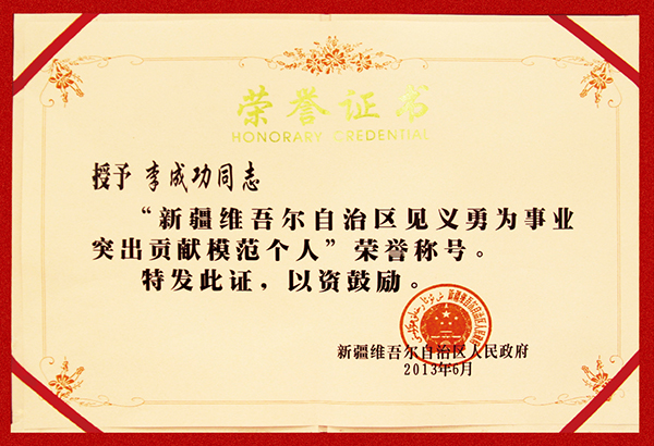 新疆維吾爾自治區(qū)見義勇為事業(yè)突出貢獻模范個人